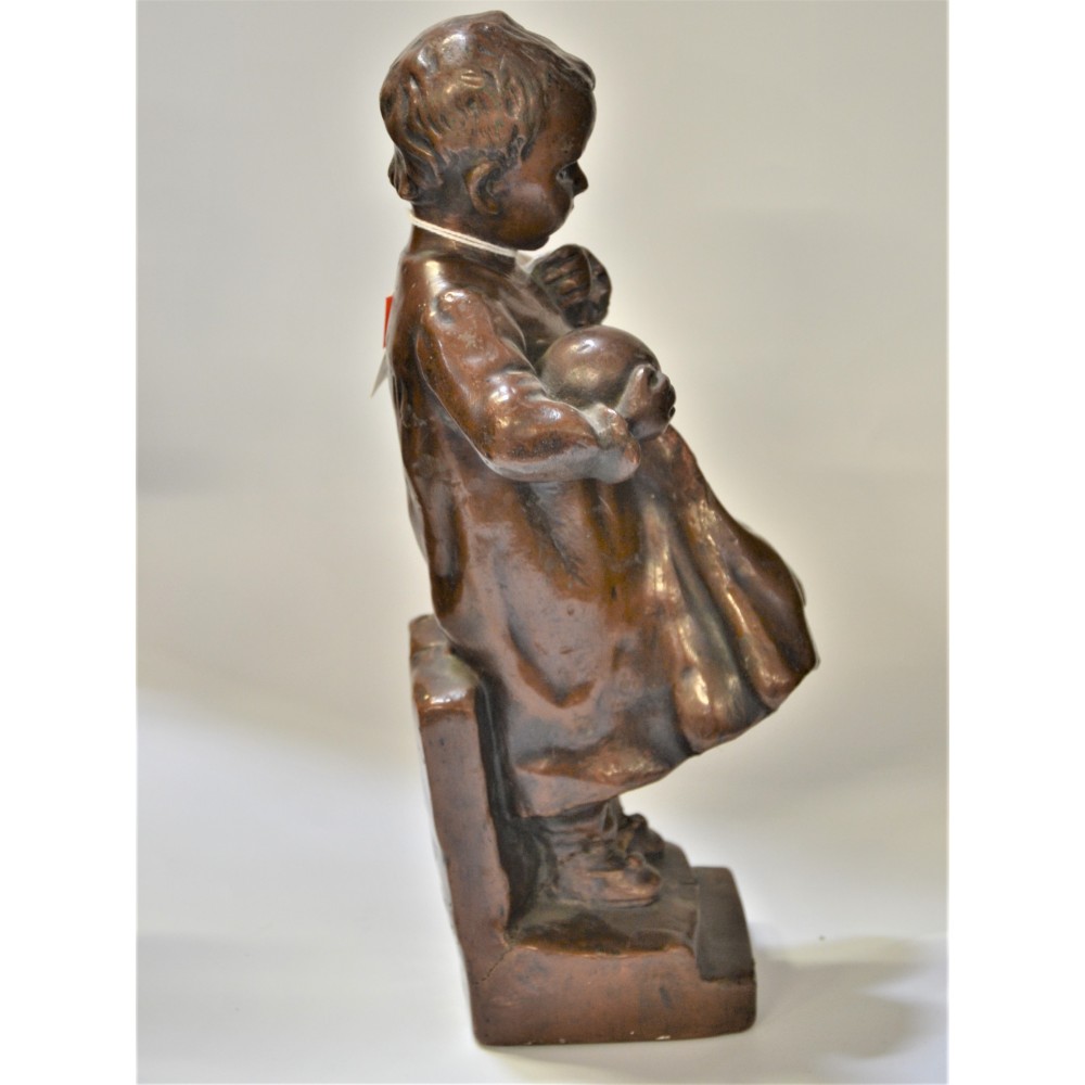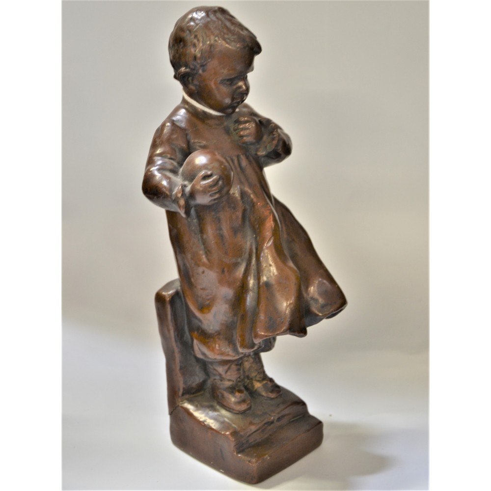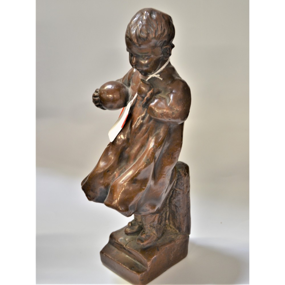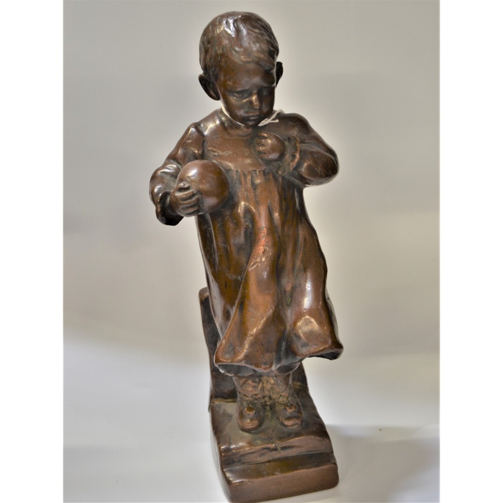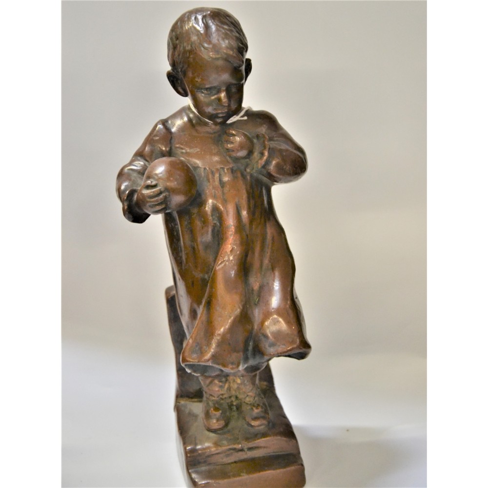 Dziecko z piłką, balonem R. Aureli rzeźba pokryta brązem pocz.XXw