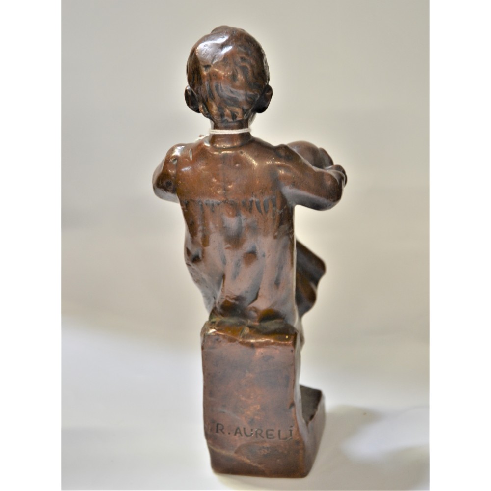 Figurka wykonana z masy ceramicznej pokryta wysokiej jakości brązem., sygnatura ryta R.Aureli. Kraj pochodzenia Belgia