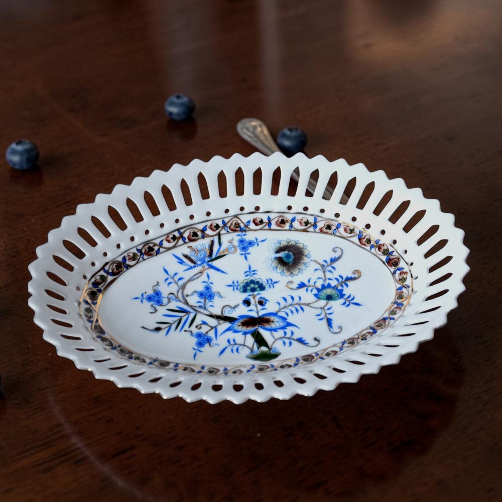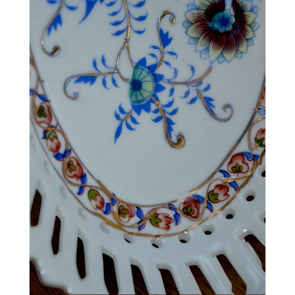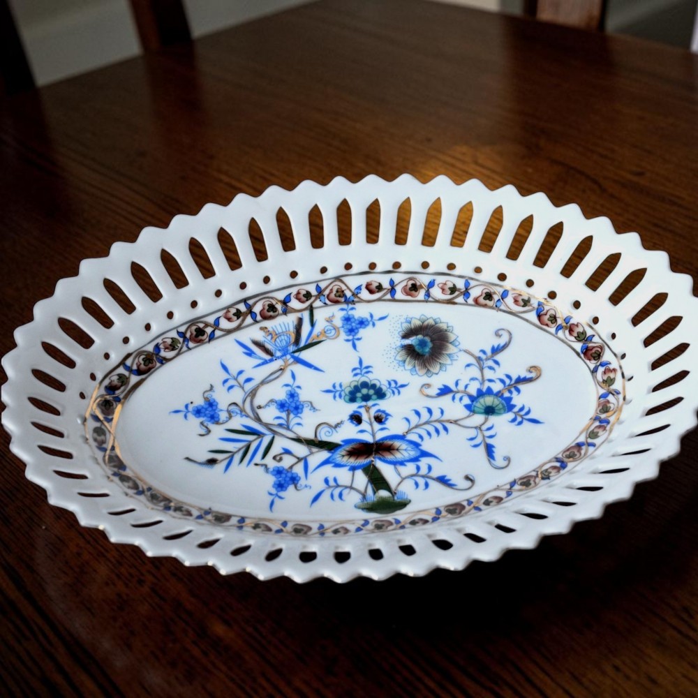 WYPRZEDAŻ Półmisek koszyk ażurowy wzór cebulowy porcelana lata 20te